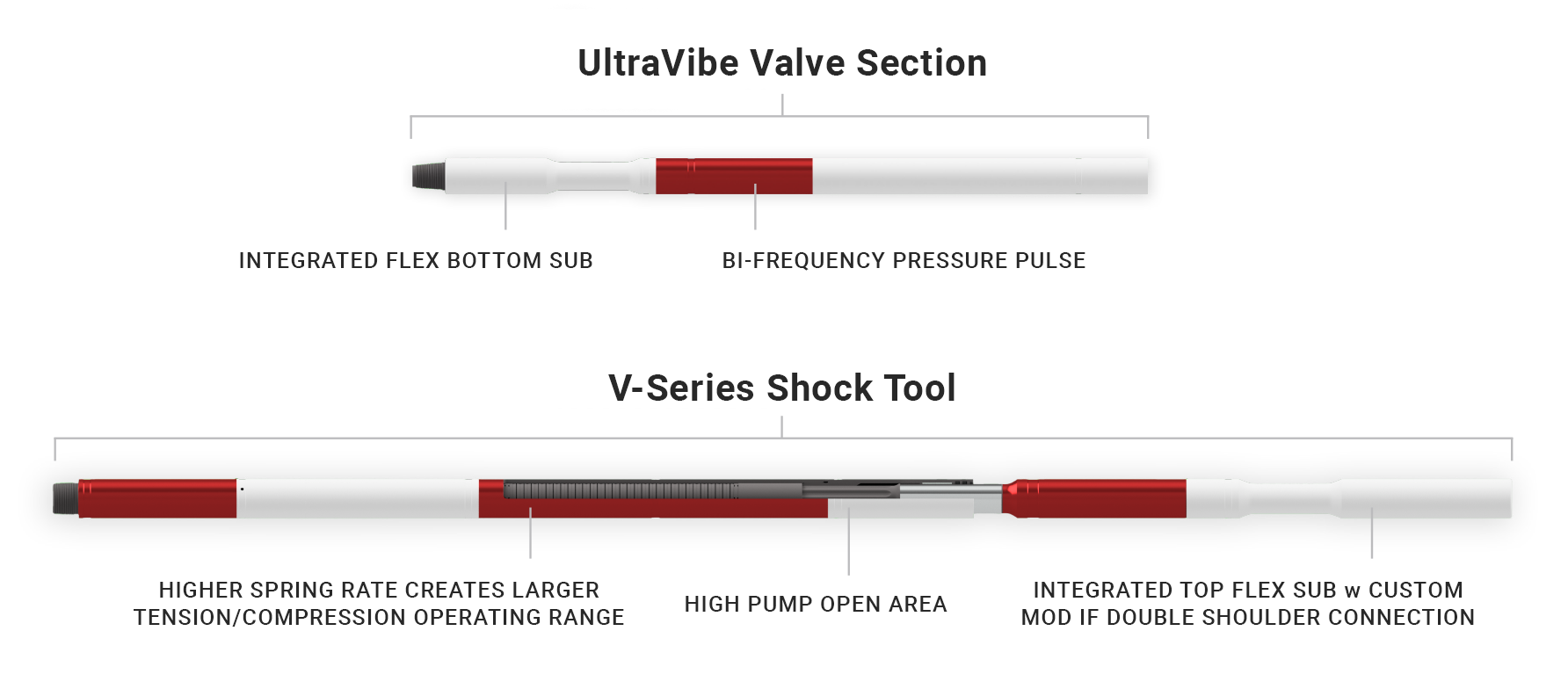 - V Series Shock Tool with high pump open area designed specifically for use with UltraVibe valve assembly
